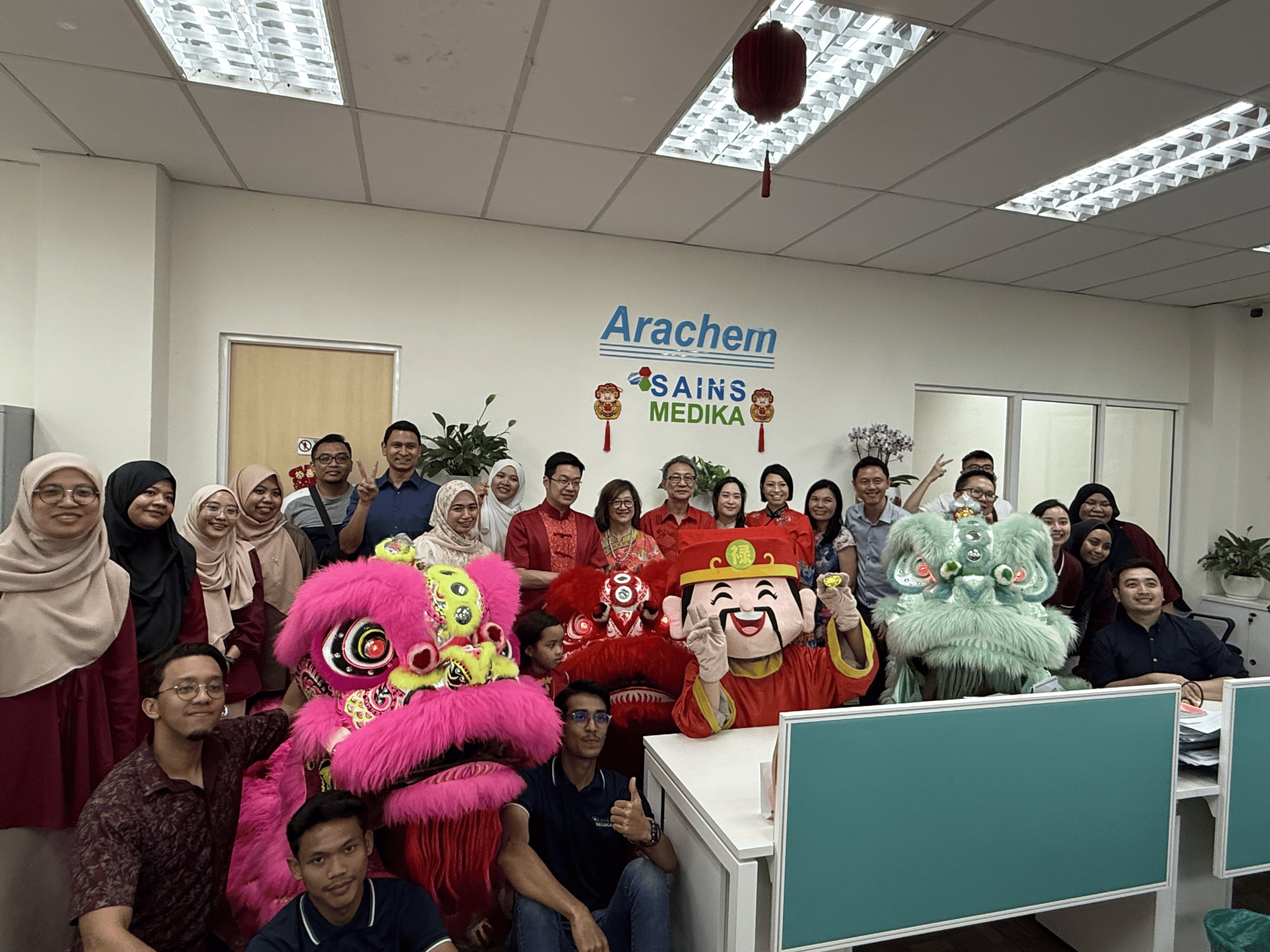 Arachem Sdn Bhd welcomed the Lunar New Year with a vibrant and festive celebration, bringing together our team in a spirit of unity and prosperity. The office was adorned with auspicious decorations, featuring red lanterns, blooming flowers, and symbolic ornaments to usher in good fortune.